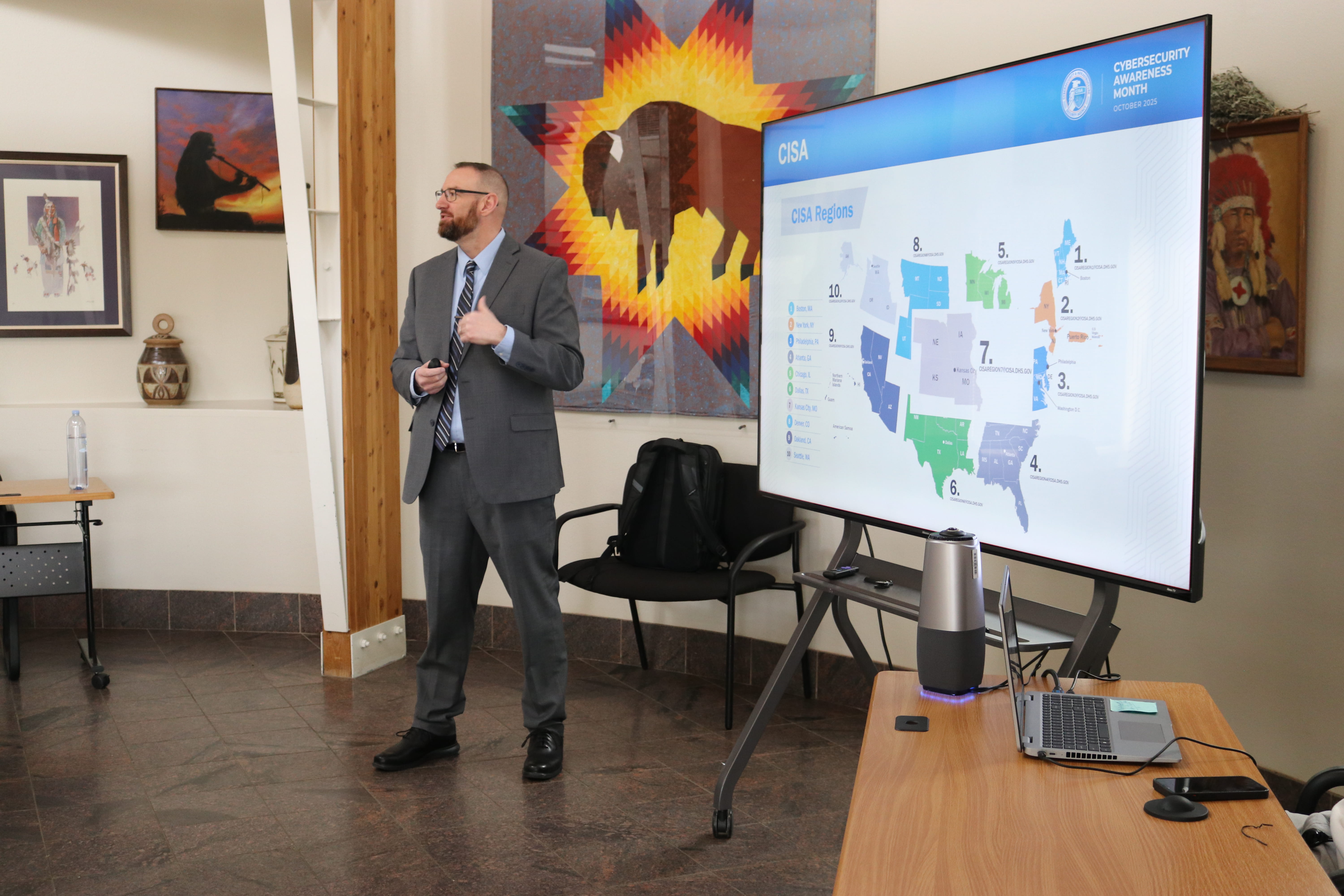 Winnebago, NE - Winnebago Comprehensive Healthcare System (WCHS) partnered with the Cybersecurity & Infrastructure Security Agency (CISA) to provide in-person cybersecurity training for employees. Warren Hagelstien, CISA's Cyber Security Advisor, presented employees with invaluable information about recognizing potential threats, such as phishing emails, suspicious links, and unsafe online practices that can put sensitive information at risk.