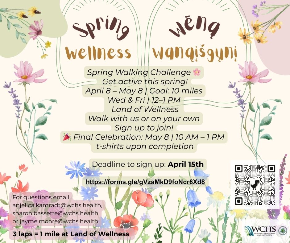 Step into spring with the wēną wanąįšgųnį (Spring Wellness) Walk! This initiative is all about jumpstarting healthy habits while making the most of the season’s fresh energy and motivation. The goal is to boost physical activity and support overall well-being in a simple, achievable way.